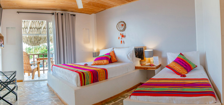 Somos un Hotel Boutique con 5 Habitaciones, 4 de ellas con Balcón a la playa y 1 con ventana a la playa en planta baja. Una Experiencia en Turismo Sostenible. A nuestro alojamiento no llega carro por lo que la tranquilidad es el factor común. La decoración de la Casa en su gran mayoría esta fabricada con productos de la zona invitando a nuestros huéspedes a convivir con lo simple y lo natural. El Hotel cumple con las exigencias del Ministerio, Nuestro R. N. T es el No 49823 nuestra política de Sostenibilidad esta enfocada en minimizar nuestra huella ecológica- Reducir el consumo de agua- Reducir la producción de basura y aprovechar los materiales que el medio ambiente nos ofrece, Nuestra fuente de energía es el Sol - Fotovoltaica. En el Hotel tenemos Mascotas ( Gatos) amigables e independientes, cuentan con vacunas y demás exigencias de la autoridad sanitaria. Ofrecemos Wi-Fi en las zonas comunes gratis a nuestros huéspedes No utilizamos envases plásticos para evitar generar residuos sólidos. Nuestro deber es defender , proteger y divulgar el patrimonio cultural de nuestros anfitriones , la Comunidad de Rincón del Mar.